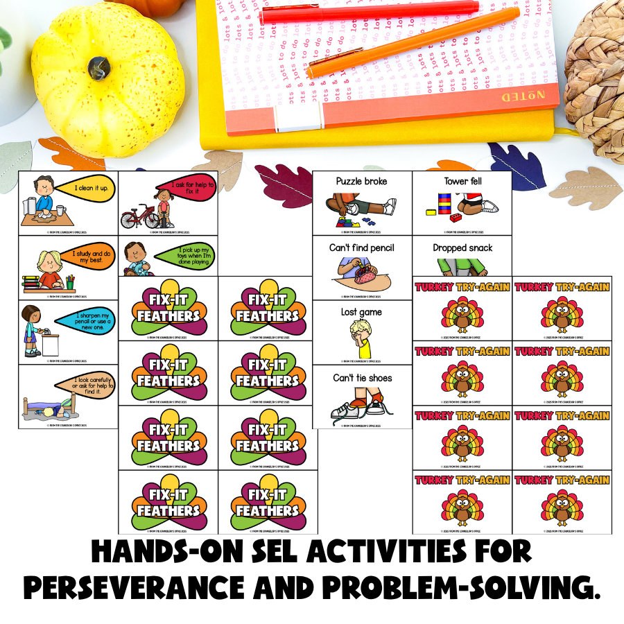 This turkey-themed SEL lesson helps students learn how to keep trying, problem-solve, and bounce back when things don’t go their way!