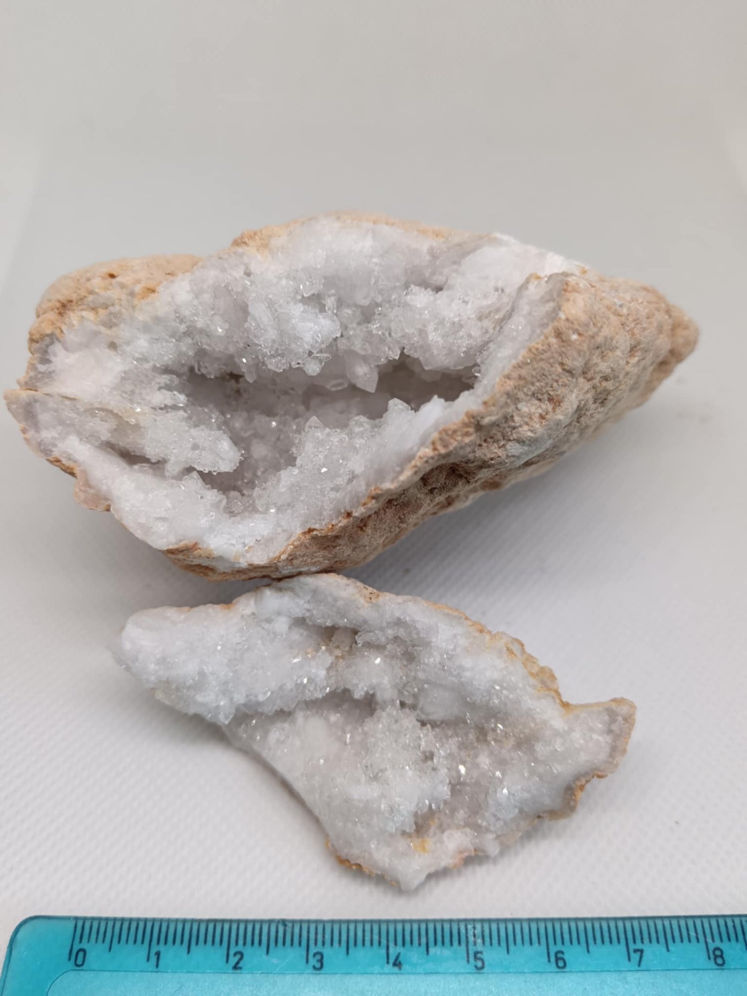 ✨ Chaque géode est unique – celle-ci pèse 384 g et présente deux parties parfaitement séparées.