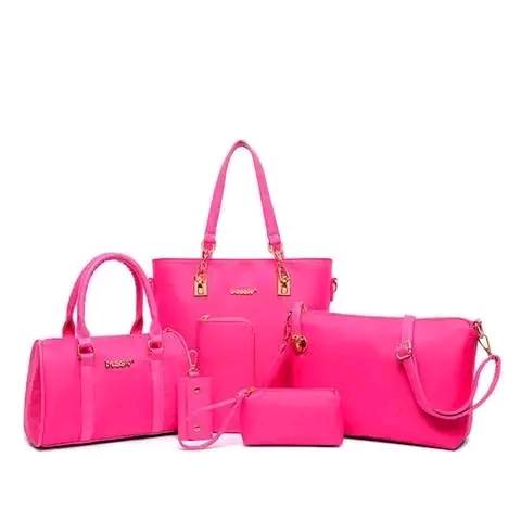 HOT PINK HIGH FASHION SIX PIECE HANDBAG SET