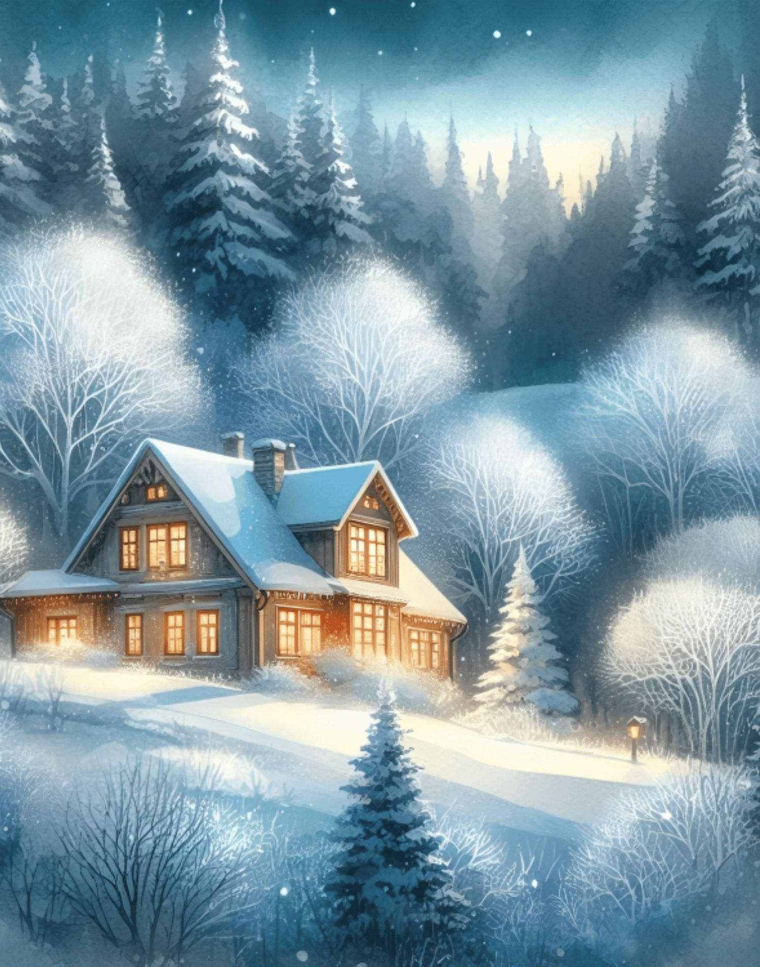 Vintage House, Frozen Forest, Snow Covered House, Light Of Hope, Top Art, Nostalgic Rural life, Nature, Cool Nature, Beautiful Nature, Sunrise, Natural Landscape, Wall Art, Digital Art, Starry Sky, Night life, Nocturnal Scene, Mountain Lake Landscape..