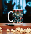 Whether you're sipping pumpkin spice during spooky season or fueling up for a horror movie marathon, this oversized mug delivers comfort with a killer twist. The high-quality print captures every eerie detail—from the blood-stained popcorn bowls to the shadowy TV screen in the background—making it a standout piece for fans of slasher films and cult classics.