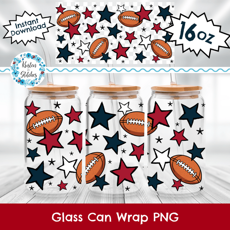 Football Team 16 oz Glass Can Wrap Transparent PNG, Houston Texans Battle Red Navy Blue