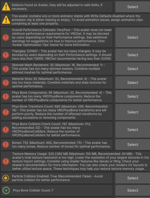 - This avatar is on the heavier side. In the future, I hope to be able to optimize more and hopefully eventually update this one with a more optimized version, but for now it remains pretty heavy. Please feel free to remove items that you don't want to bring the size down a bit.