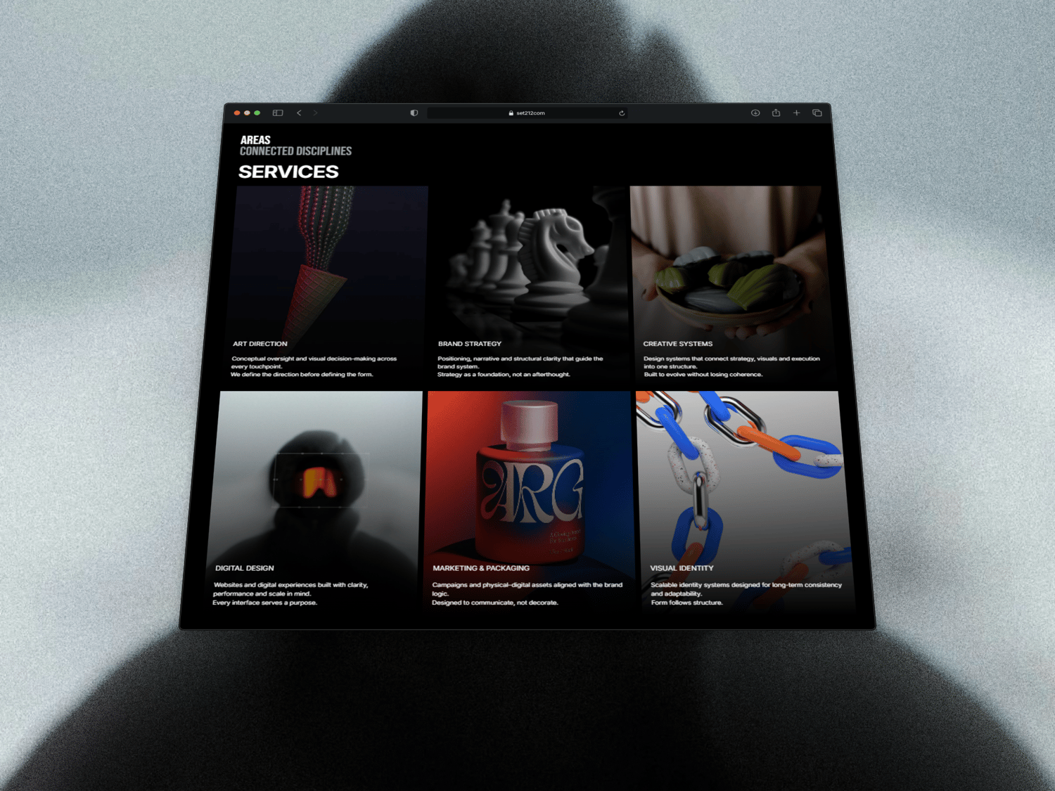 SET.212 is ideal for creative agencies, studios and independent designers who value direction over decoration.It supports a curated approach to presenting projects, services and capabilities, while maintaining a calm, professional tone across the entire site.
