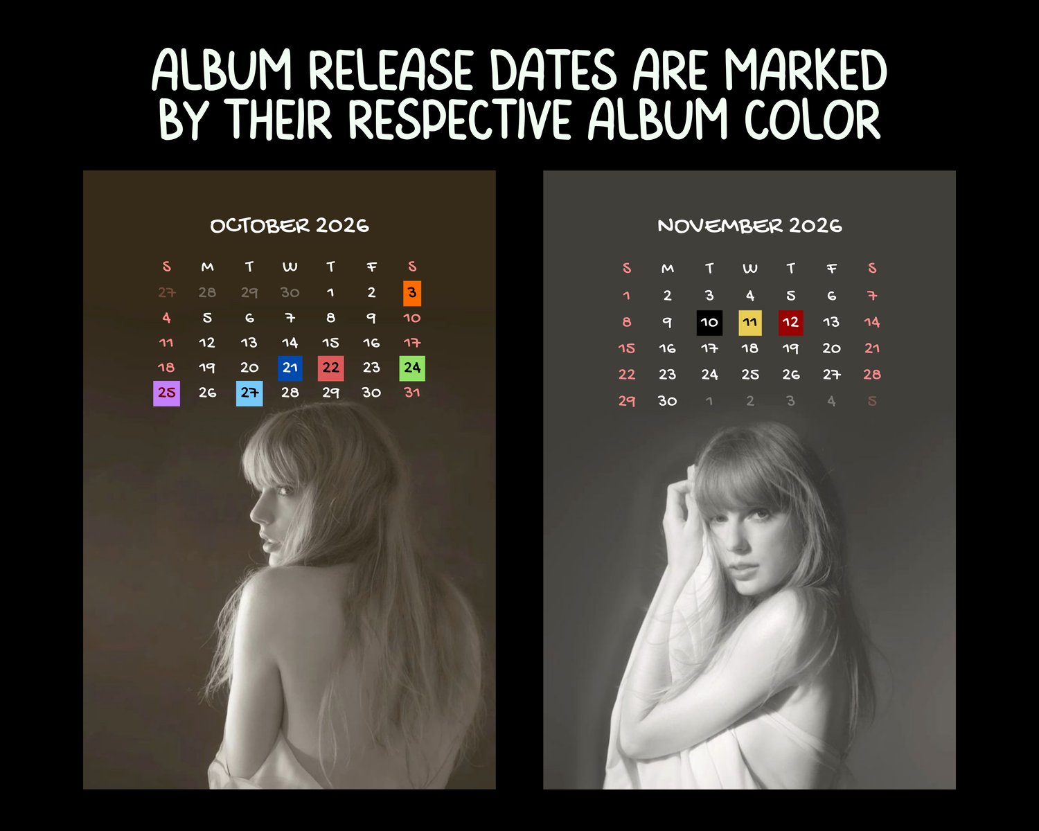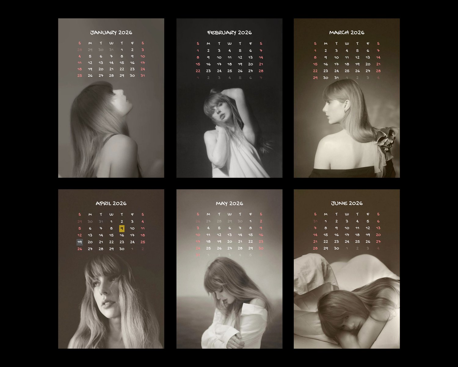 Taylor Swift TTPD 2026 Calendar.