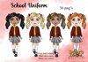 Instant digital download of our Cute School Girl in Burgundy and yellow Uniform and Pigtails PNG (36 PNG’s included one)