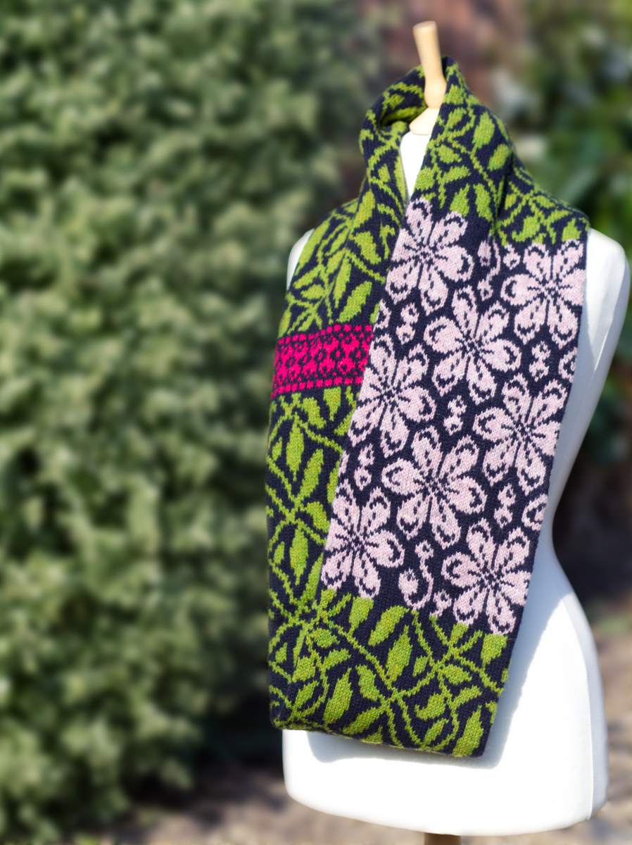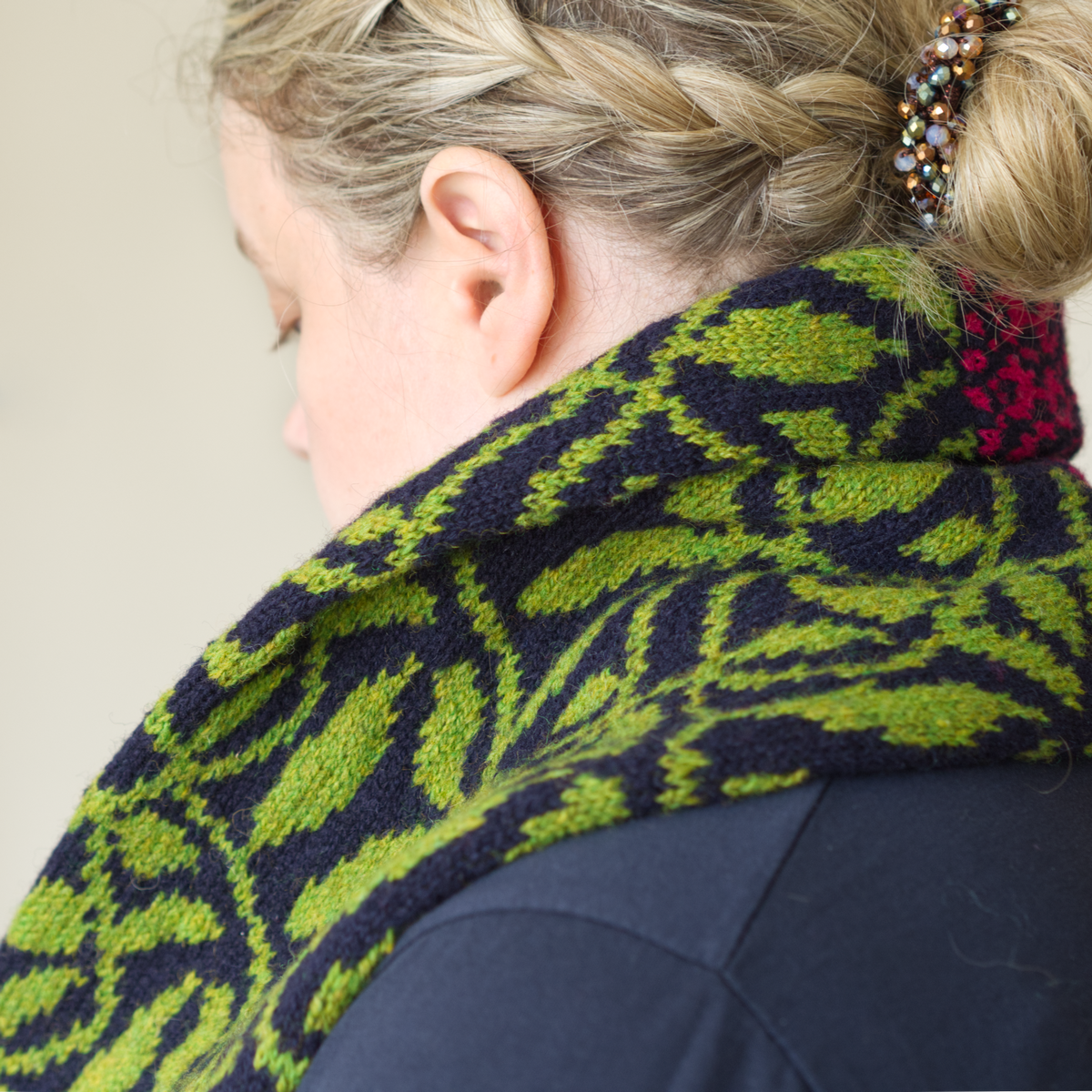Dive into knitting the Floral Fable cowl, adorned with blooming flowers and meandering vines. This versatile pattern allows you to customise the length by repeating the motifs as many times as you like. Worked in the round throughout, the cowl is then joined together at the end for an infinity loop.