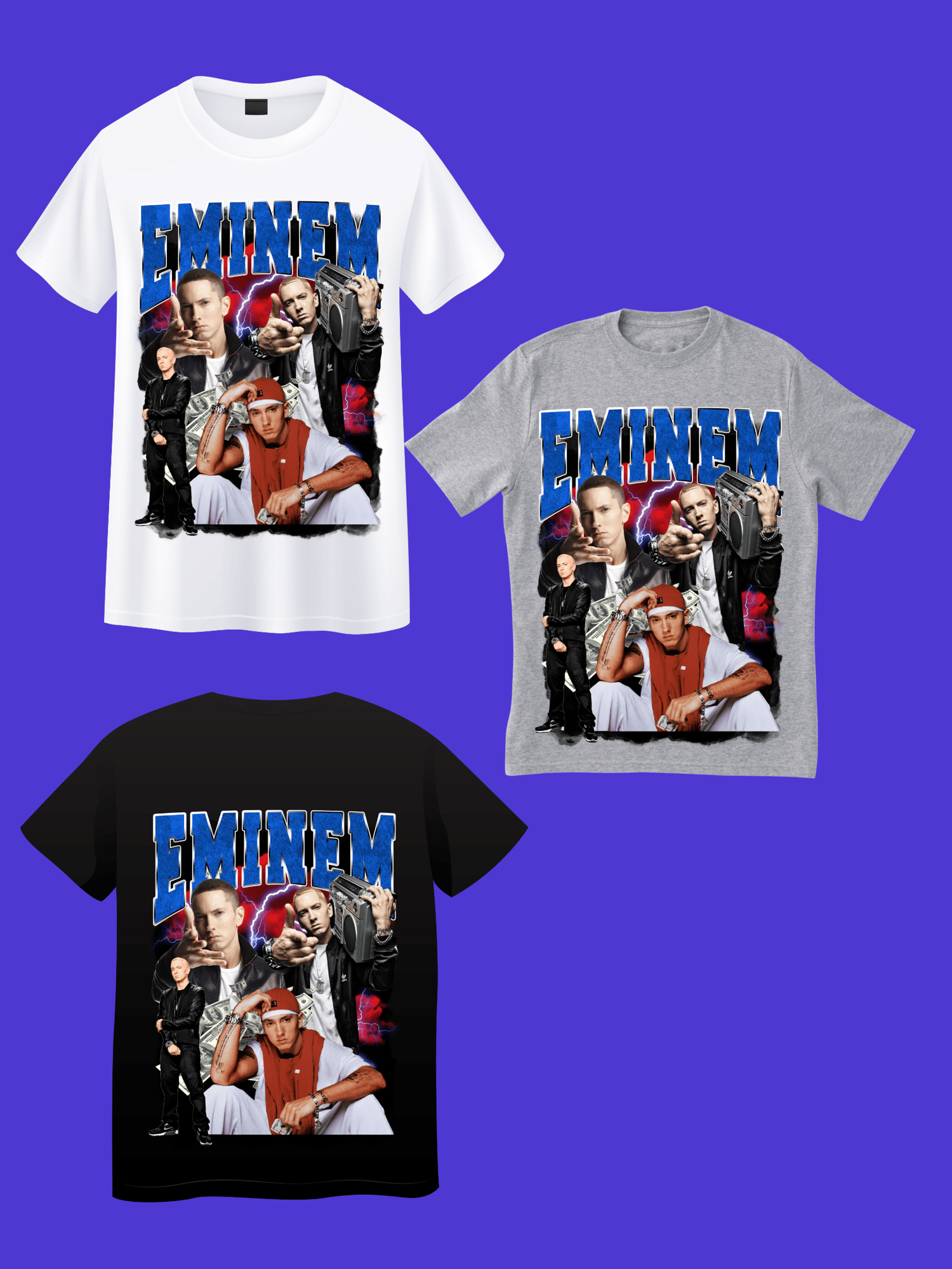 Turn heads and rep your favorite rap legend with our one-of-a-kind, custom-made Eminem t-shirt! Whether you're a Slim Shady fan from day one or just love iconic hip hop fashion, this tee is a must-have.