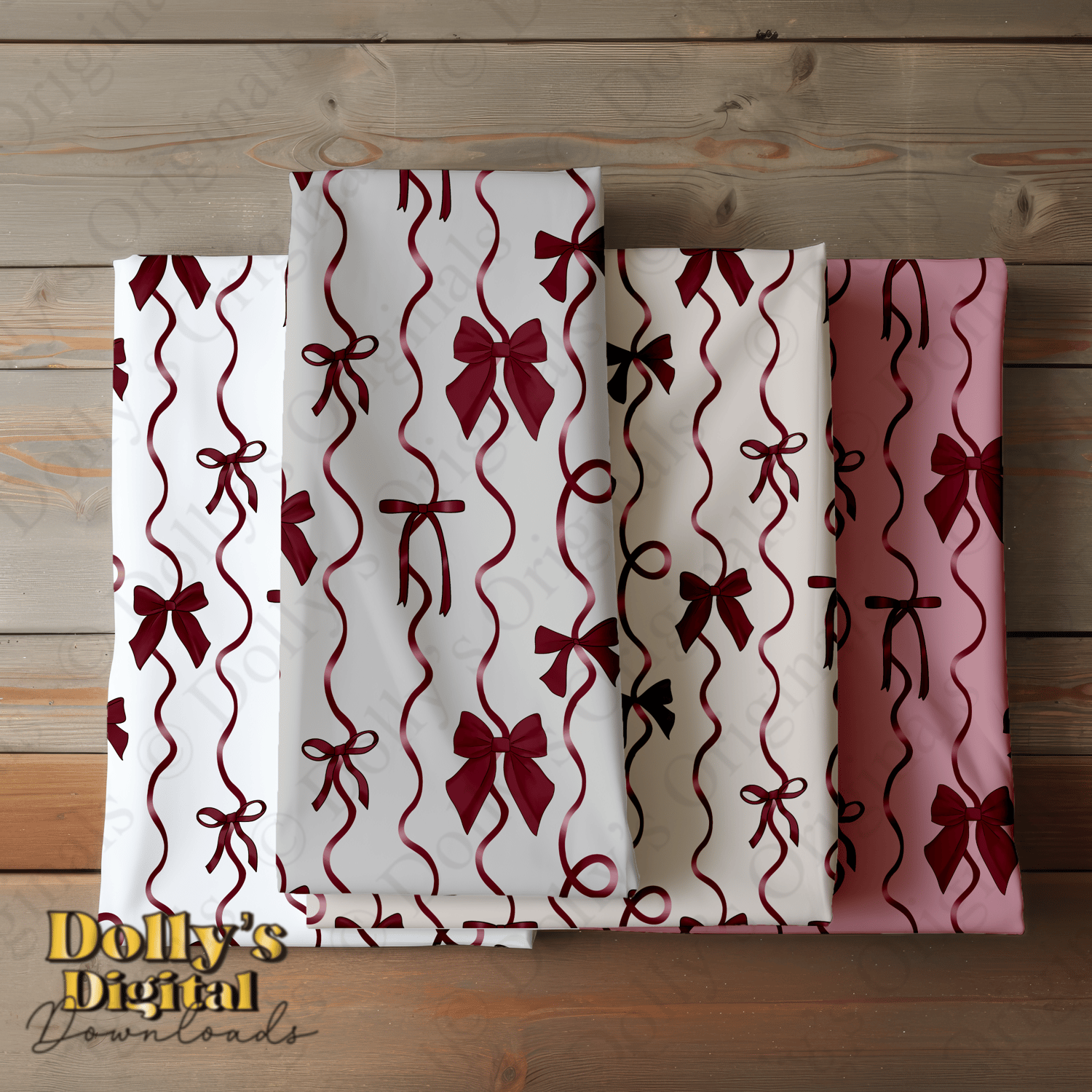 Includes one Burgundy Ribbons and Bows Seamless Patterns Clipart PNG (4 PNG’s)