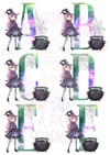 Halloween witch and cauldron alphabet
