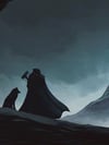 Artwork highlighting the Dark Age of the Destiny universe, Featuring Saladin, his young wolf and Felwinters Peak.