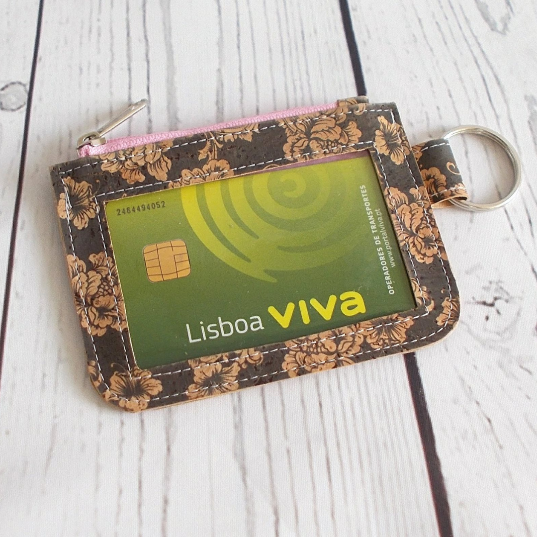 This little card pouch has 1 pocket/divider on the inside and closes with a zipper. It also has a split ring to put your keys or a lanyard.
