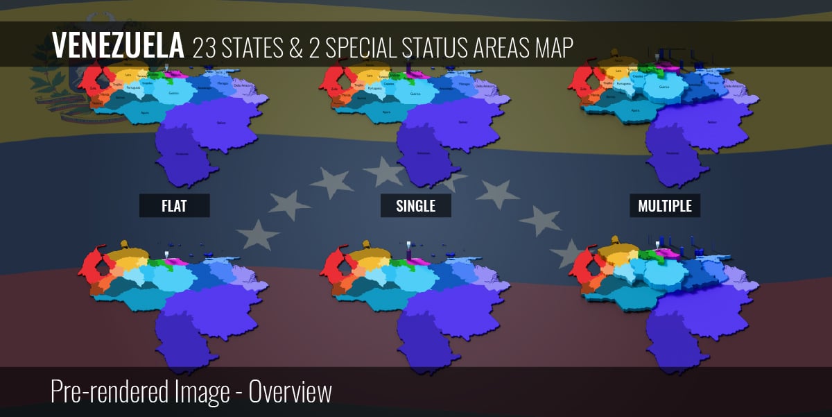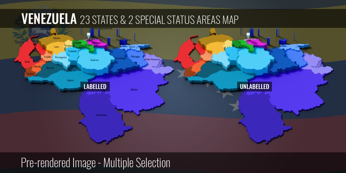 Venezuela - 23 States & 2 Special Status Areas Map (3D + Pre-rendered Images)