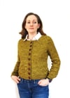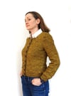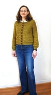The Marsh Grass cardigan is knit from the bottom upwards with set-in sleeves and a rounded crew neckline.