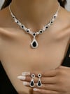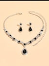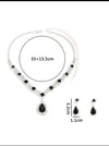 1set Fashionable Black Teardrop Rhinestone Earrings Necklace Set Bridal Wedding Accessories For Women