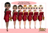 Instant digital download of our Ten Days To Party Burgundy Dress Dolly Character Bundle PNG (29 PNG’s)