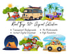 Each clipart is crafted with attention to detail and comes as a high-quality PNG file with a transparent background—ready to use instantly! No watermarks, no fuss, just pure creativity at your fingertips. Perfect for use, this collection will add fun, color, and a touch of wanderlust to your designs.