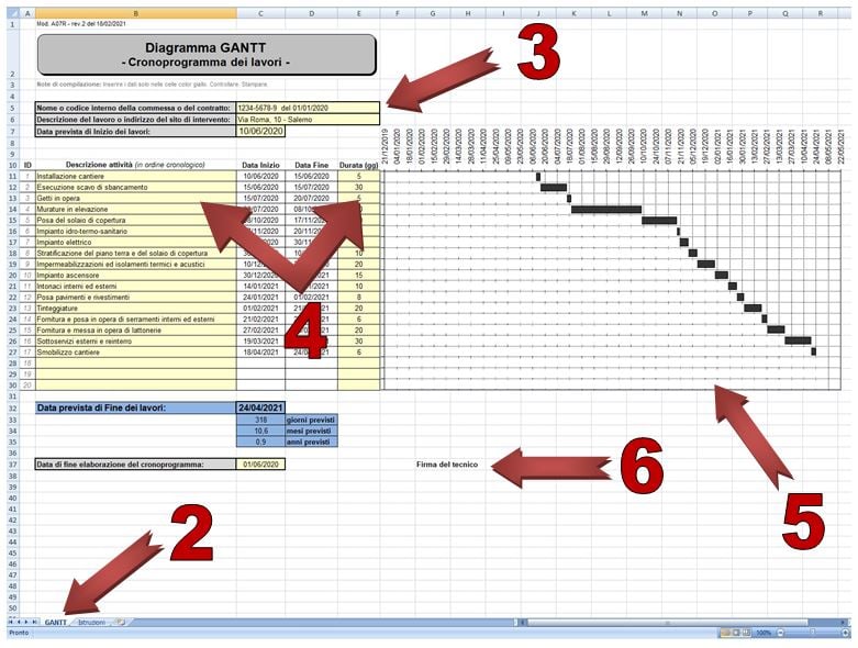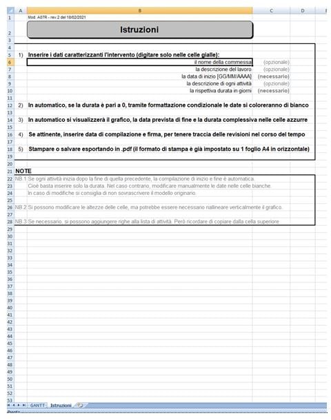 - Aprire il foglio "GANTT" cliccando in basso.