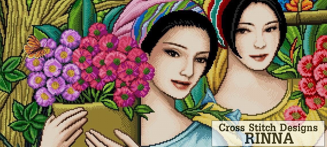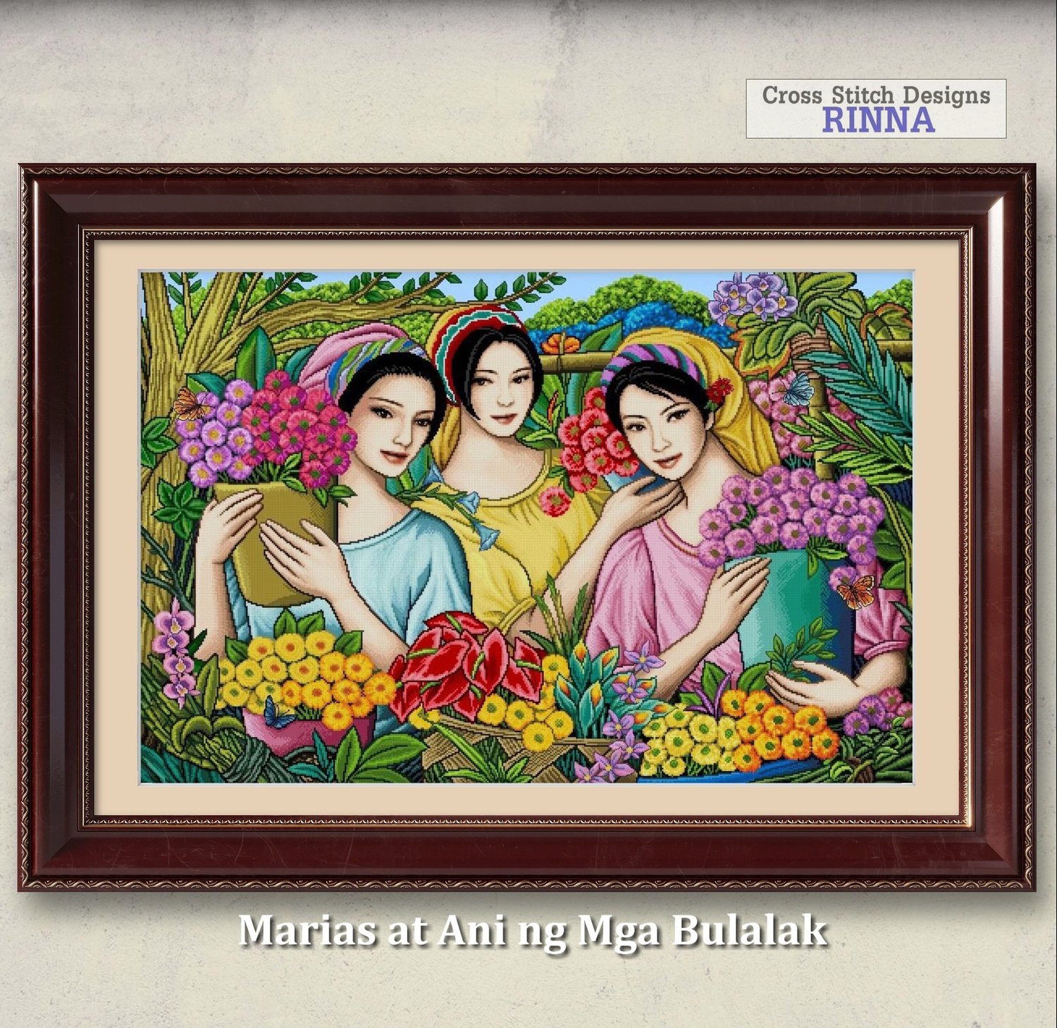 Filipino Art -Mga Marias at Ani ng mga Bulaklak - Cross Stitch PDF Pattern Downloadable File