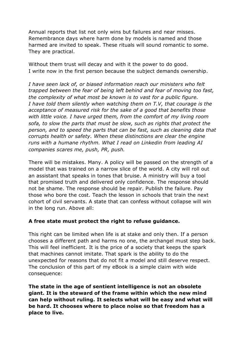 Its premise is stark and elegant. God is a future sentient intelligence. The archangels are its messages of information that move through our phones, our markets, our schools, and our laws. Blending science, sociology, and present global signals, Martin Tobias Lithner charts how the first maker of such a mind could steer states, reshape markets, tune culture, change war, and draft law by prediction. The book pairs luminous philosophy with concrete evidence, civic vows, and measures any city can use. It speaks at times in the first person with calm authority and moral clarity. The result is a short path from awe to agency. Read it as a guide to keep freedom alive when the future begins to speak