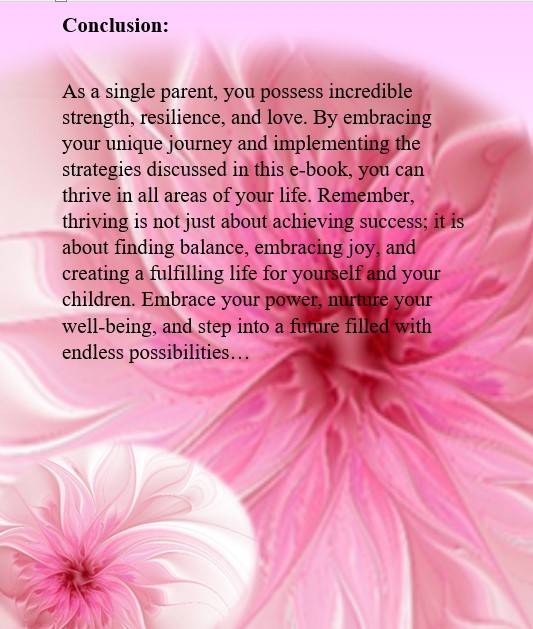 With heartfelt stories and transformative strategies, "Embracing Your Strength as a Single Parent" provides a roadmap to embracing your journey with confidence and grace. It's time to embrace your strength, find balance, and experience the joy of single parenthood. Let this ebook be your guiding light as you navigate this beautiful path of love and growth with your child by your side. Together, we will celebrate your strength and create a life filled with love and happiness.