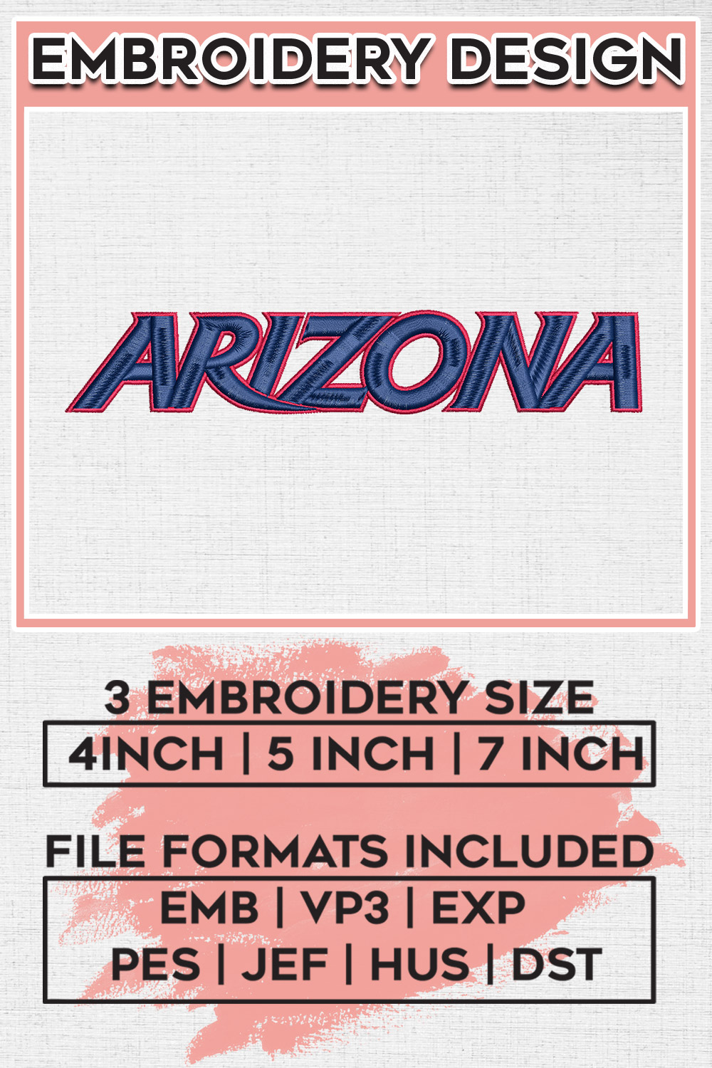 NCAA Arizona Football Team Word Logo Embroidery Designs, NCAA Arizona Wildcats Machine Embroidery Files, NCAA Logo embroidery designs, NCAA Arizona Logo, Digital Download
