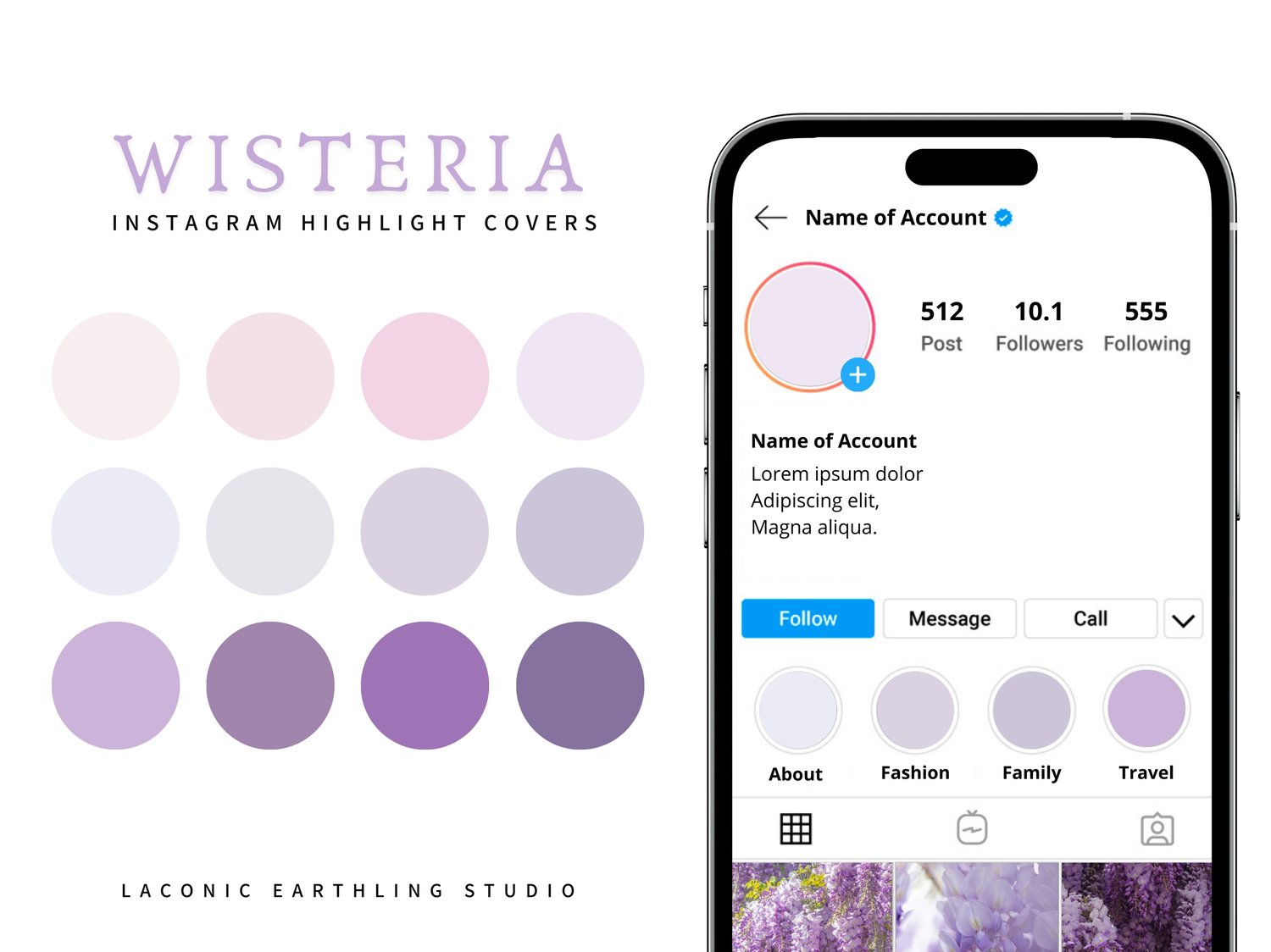 Social Media Instagram Wisteria Highlight Covers | Neutral Story Instagram Highlights | Editable Canva Covers | Lilac, Purple violet