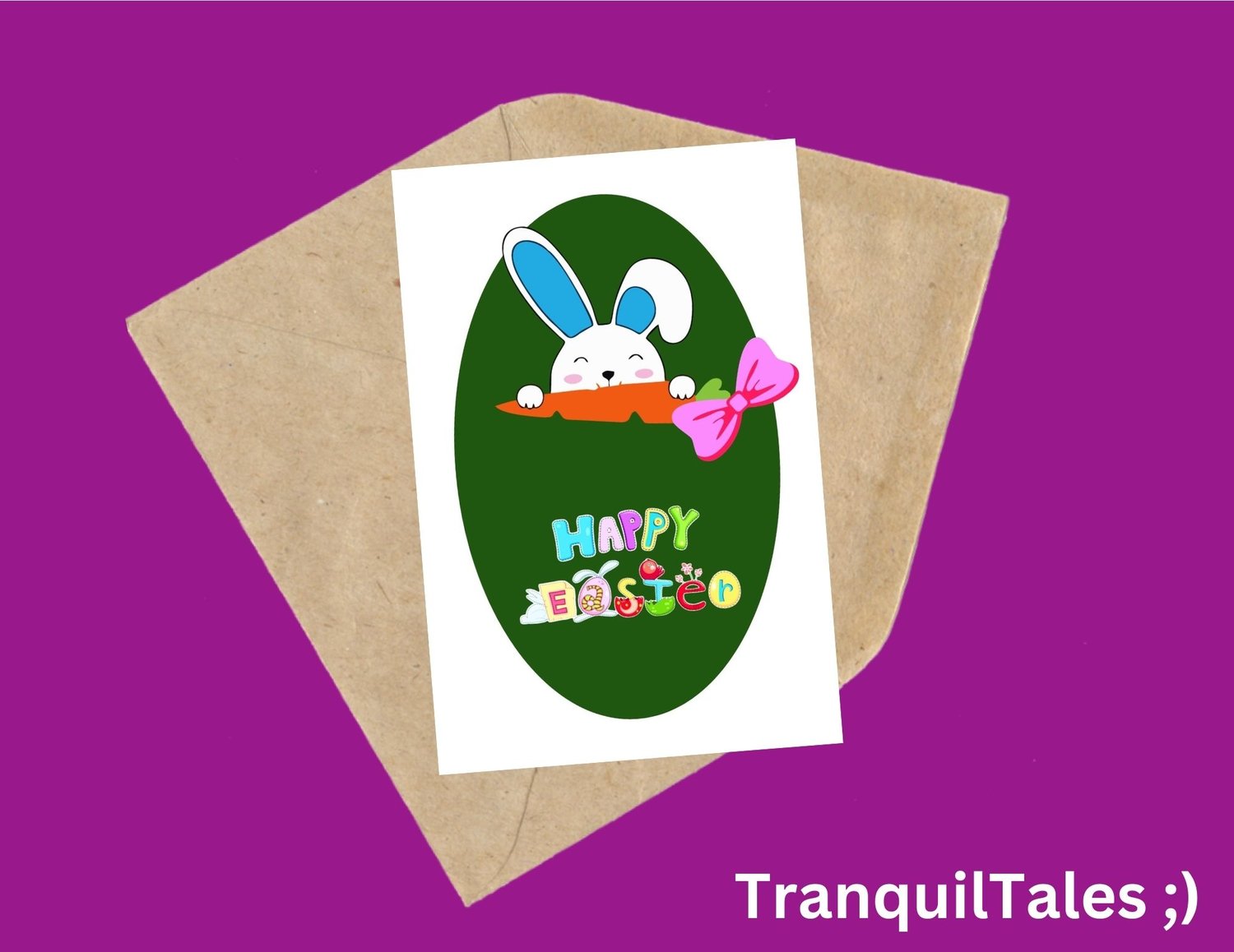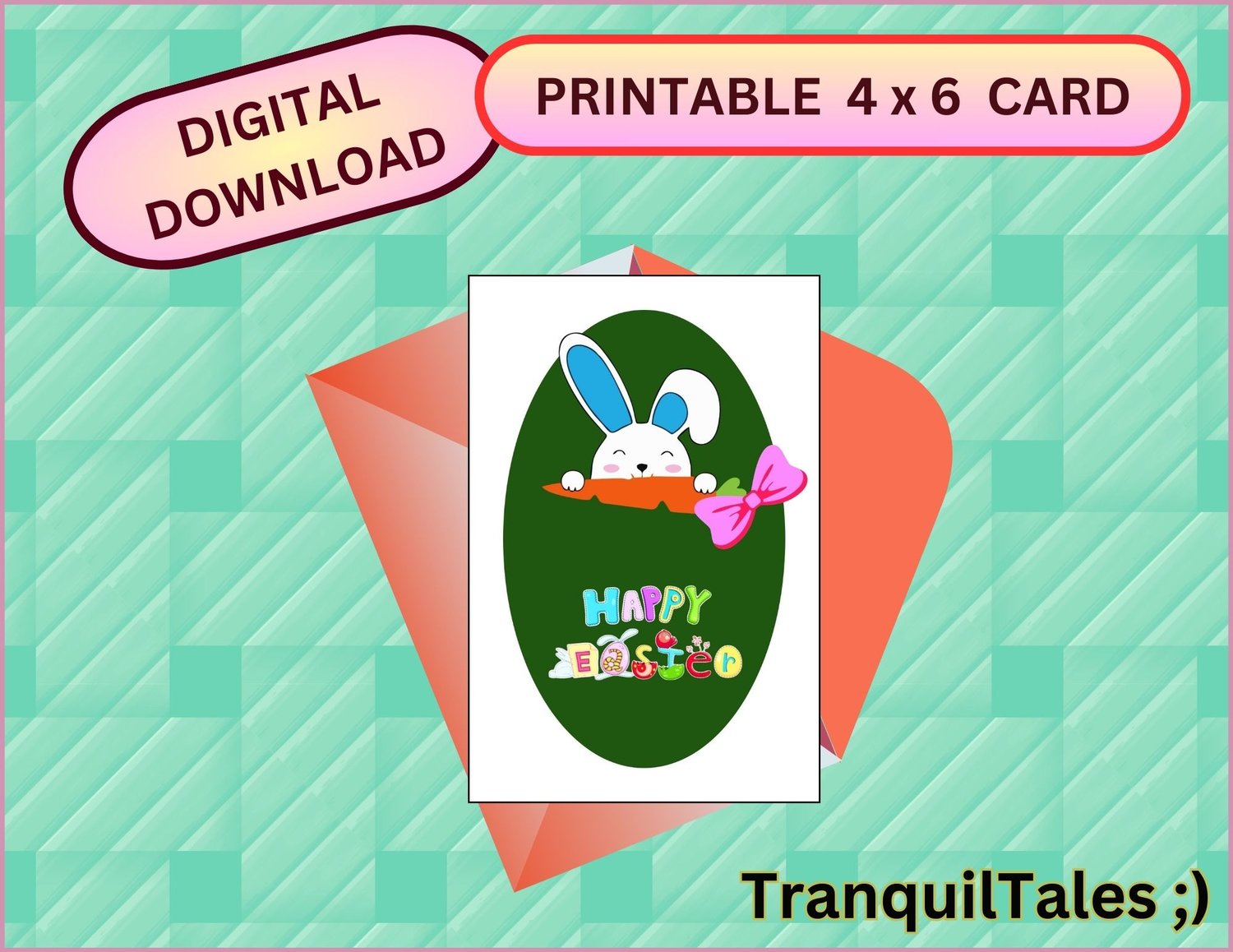 Happy Easter - Bunny & Carrot Card - 4" x 6" inches - Easter card - PDF File