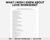 What I Wish I Knew About Love Worksheet, Couples Therapy, Relationship Goals, Breakup Recovery, Personal Growth, Self Discovery, Self Love