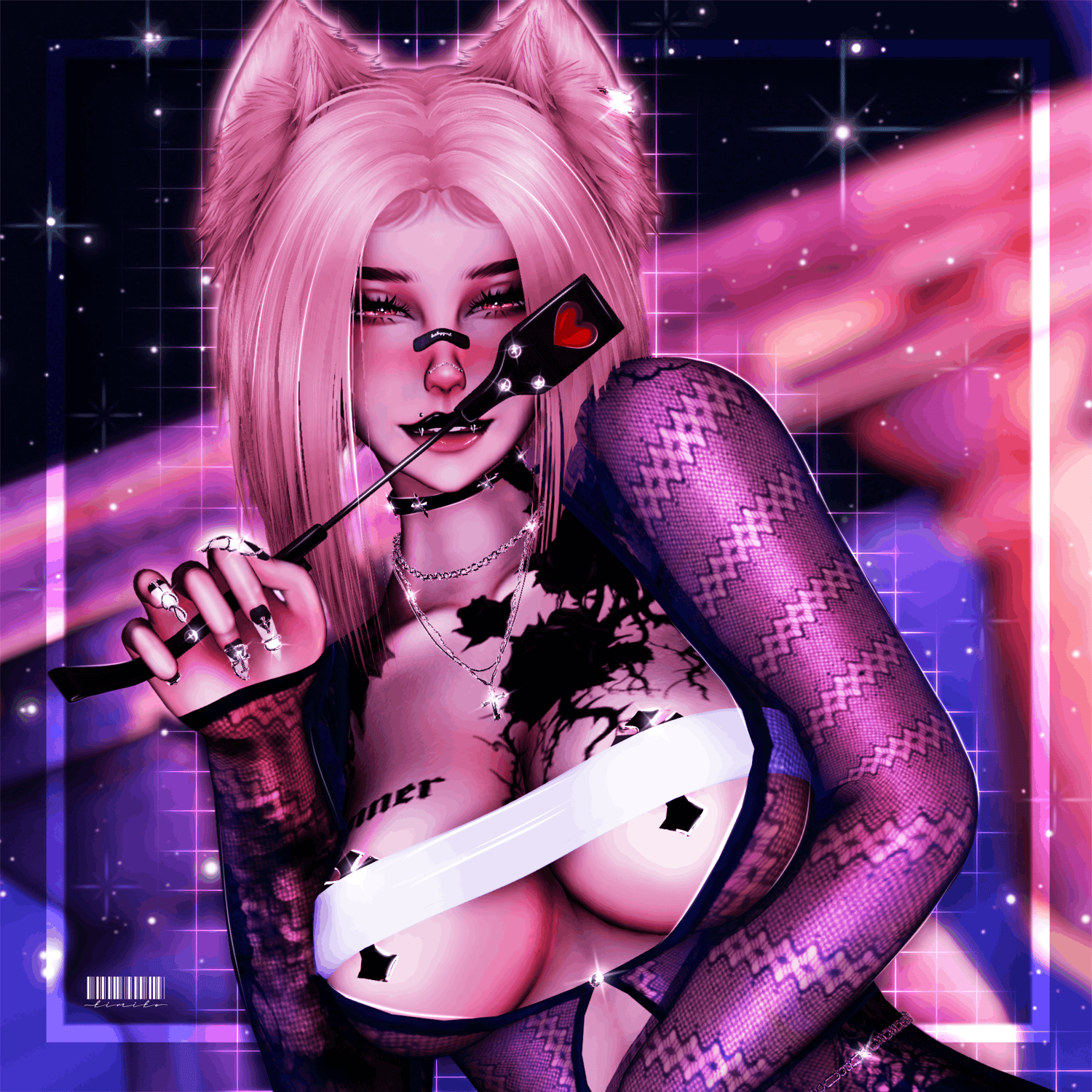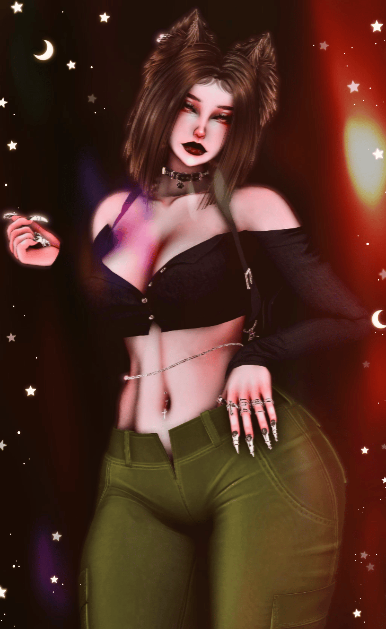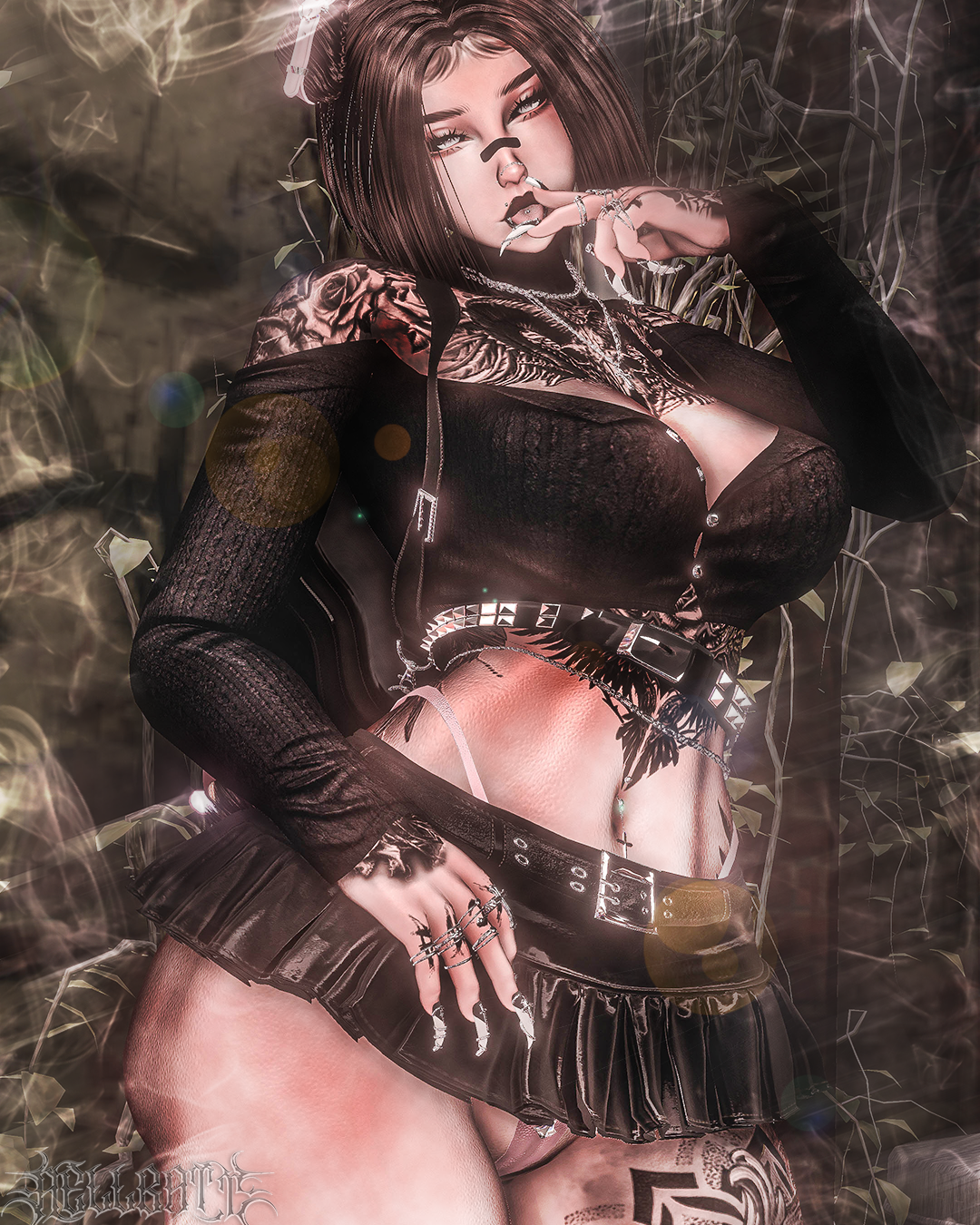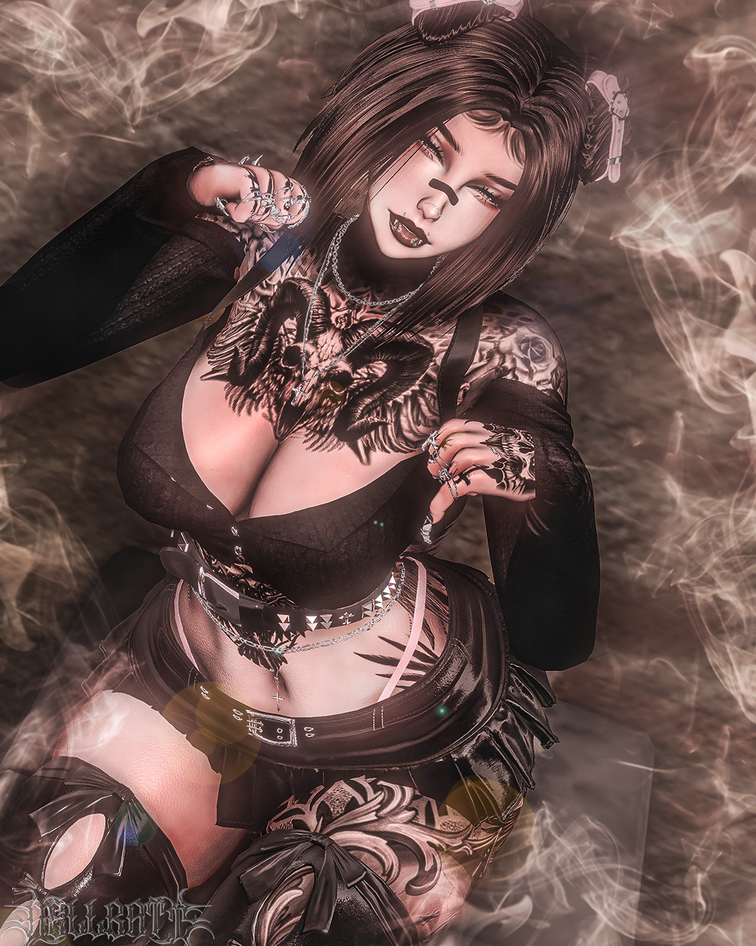 Body/Pants - zinpia(my edit no reuse), Babyhairs/Long sleeve top - sleepyvrc, Eye Texture - fair, Backpack/Hair Textures/Wavy Hair/Boots/Skirt - saikura, Bandaids- berryvee, Head/Makeup/Pigtail hair/Short hair/Belt/Bikini top & bottoms/Husky ears/Pasties - nessy.store, Bodysuit/Hip Chain - weeby, Stockings/Heels/Cross Choker - mariaaam, Necklaces -suki, Lace Choker - wolvesstudio, Puppy Tail & Ears/Collar - winks, Braid Pigtails - minki, Strap top/Leg ribbons - mutt, Paddle & Whip - holoexe, Nails/Rings - nauuki, Tattoo 1 - yamikitty, Tattoo 2 - francetexture, Rerig Com - yuuji(my edit, no reuse), Unity Com/FT Set up - littlelilith, Heart Particles - bunky, Gogoloco - franada, Misc - wholesome, Neck Merge - Crozzie