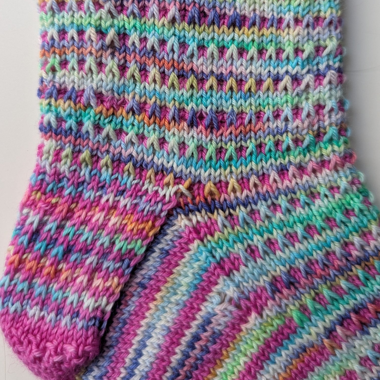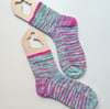 Knitting from the top down with a heel flap and ending with a round toe these are based on my basic sock pattern so are super easy to follow. Written with three different circumferences you can knit them as long as you need (link to measurements if you don’t have a foot to hand to know the shoe size), just end on your circumference size as shown by the letters S, M, L. There are tick off charts throughout so you can keep an easy note of where you are in the pattern.