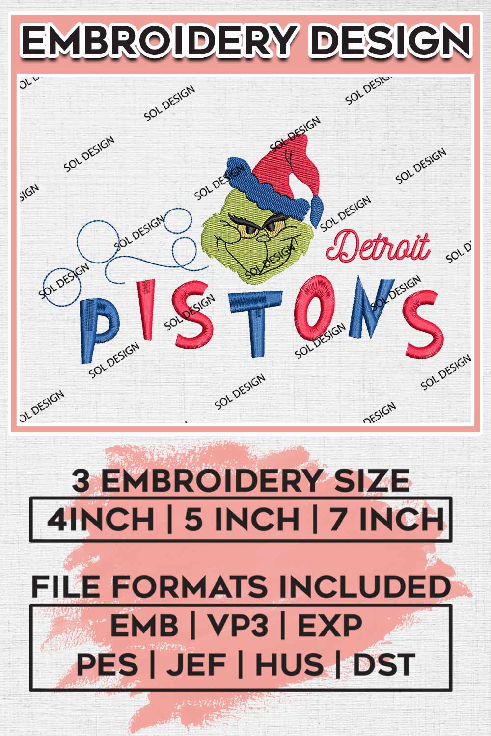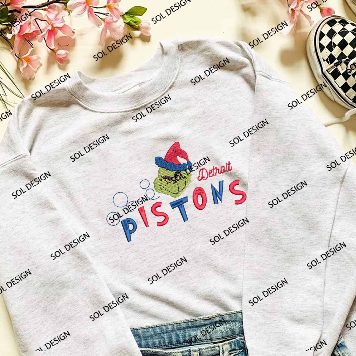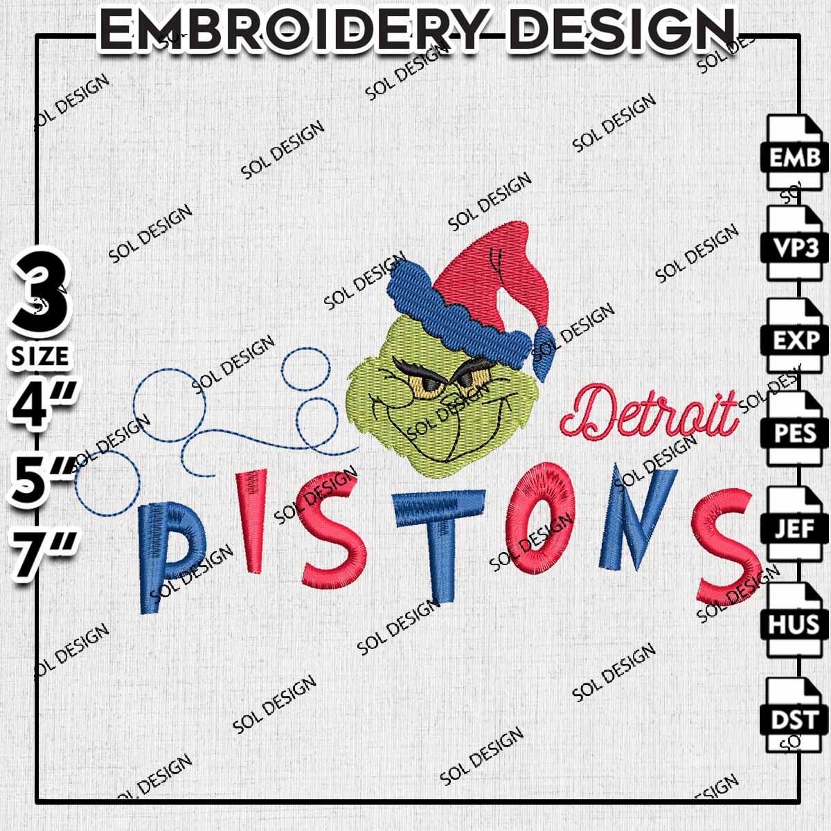 Christmas Grinch Face x Detroit Pistons NBA Basketball Team Embroidery Designs, Grinch Embroidery Files, NBA Pistons Basketball Team Logo Embroidery, Merry Christmas Machine Embroidery Design, Digital Download