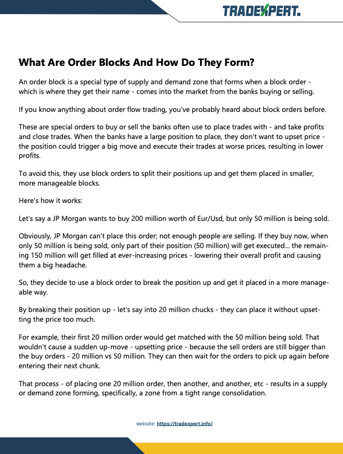 - Detailed and In-Depth Content: The guide thoroughly covers both the theory and practical application of Order Blocks, helping you understand their formation and how to use them in real trading scenarios.