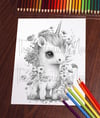 Baby Flower Unicorn #1 Fantasy Anime Coloring Page, Adults + kids Instant Download - Grayscale Coloring Page Printable PDF Horse