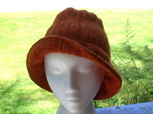 This snappy knit fedora hat is worked sideways using short rows. It can be worn as a fedora (as shown in the photos), or pulled down on the head to look more like a traditional bucket style hat. The brim can be worn up, down, or both, giving the hat a lot of different looks, easily adaptable to the individual style of the person wearing it.