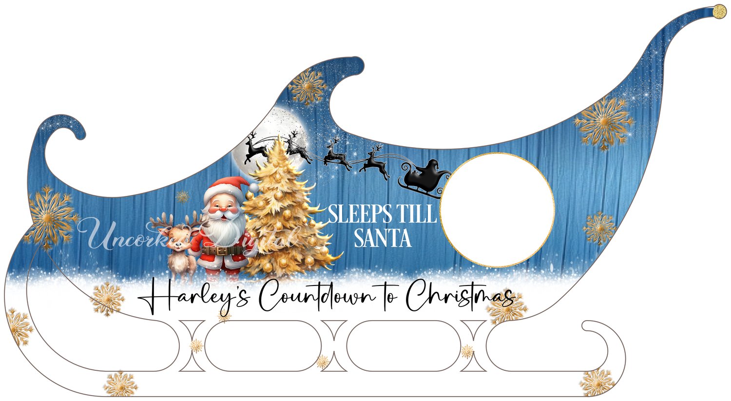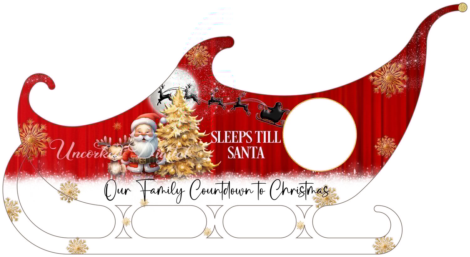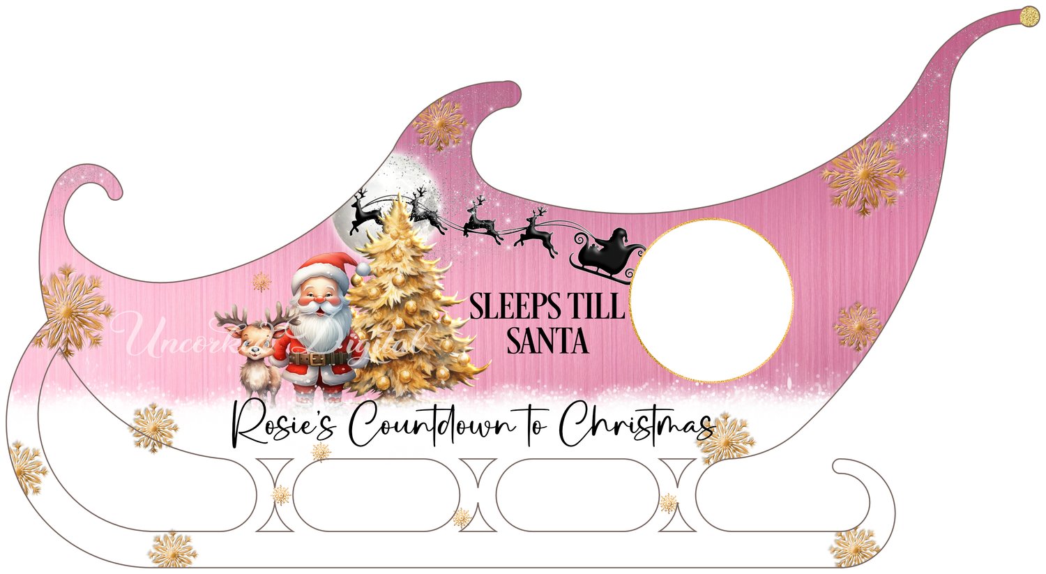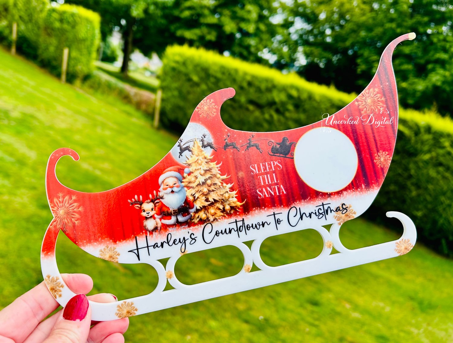 Sleeps till Santa sleigh design in 4 colours, Red, Blue, Pink, Gold and Grey to fit the blanks from Woodform Crafts.