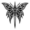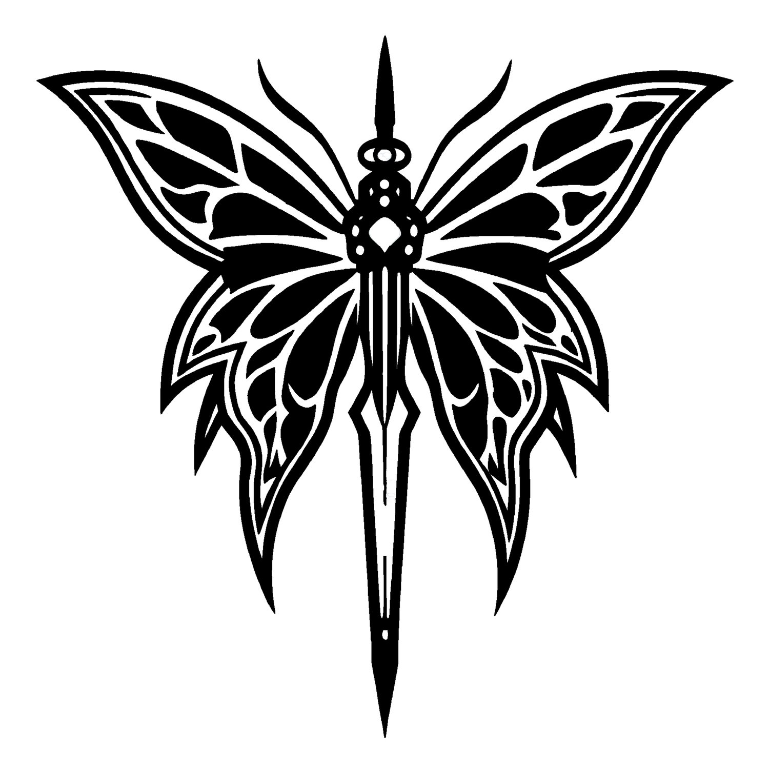 Delicate meets dangerous in this striking butterfly line art design pierced by a sleek blade. Clean, minimalist lines contrast with bold symbolism—representing transformation, strength, and resilience through adversity. The sharp edge and graceful wings create a powerful visual balance, perfect for edgy, modern, and meaningful designs.