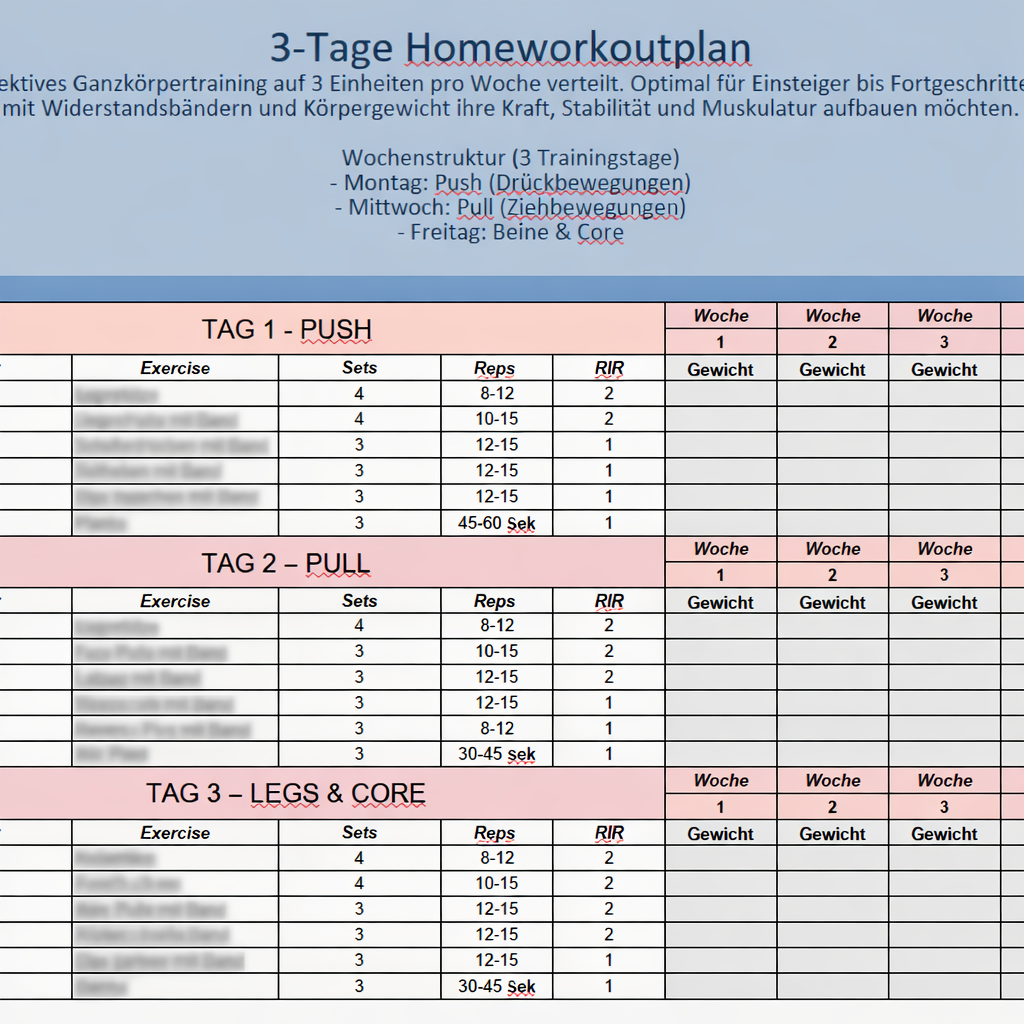 - 2-, 3- oder 4-Tage-Pläne für Studio und Homegym