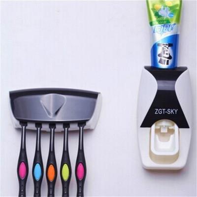 Fashion Home Bathroom Touch me Automatic Toothpaste Dispenser + 5pcs Toothbrush Holder Set Family Set Wall Mount Rack Bath