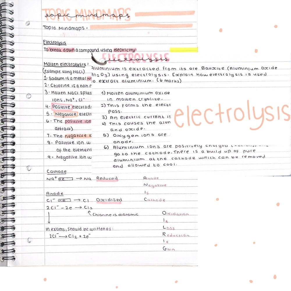 Electrolysis condensed notes specific to the AQA Chemistry Triple science (Separate science) course but will be helpful to those studying other courses too. This file includes:
