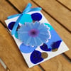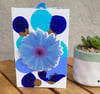 A beautifully abstract creation in bold blue hues, with a delicate floral centerpiece and soft cornflower ribbon. This completely handmade 4x6 canvas card doubles as a functional gift envelope, perfect for small treasures. It also serves as a charming desk or wall art accessory, adding a touch of elegance to any space. Folded to include space for a personal message, it’s a versatile keepsake that brings both artistry and thoughtfulness to your gifting.