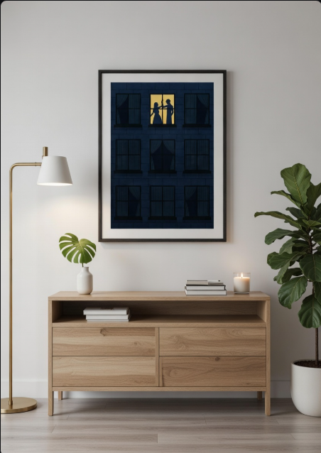 Danced On The Third Floor shows a quiet apartment building where only one window glows with light, and inside that room a couple dances together. While the rest of the building stays dark and silent, this single moment shines with warmth and joy. It’s about love standing out in the middle of stillness, two people finding happiness in each other’s company, turning an ordinary night into something special.