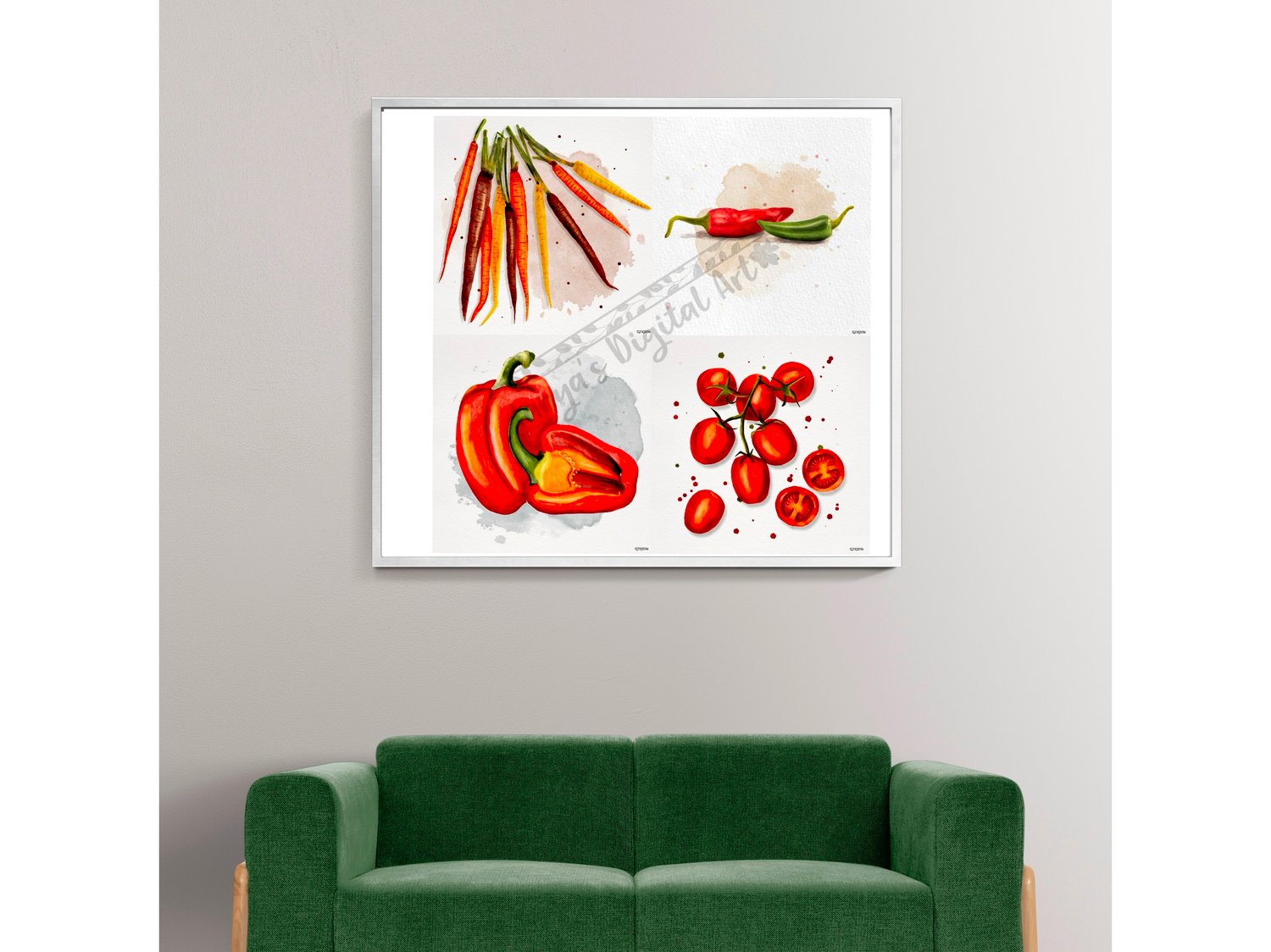 Watercolor Fruit & Veg wall art pack - 8 different paintings