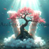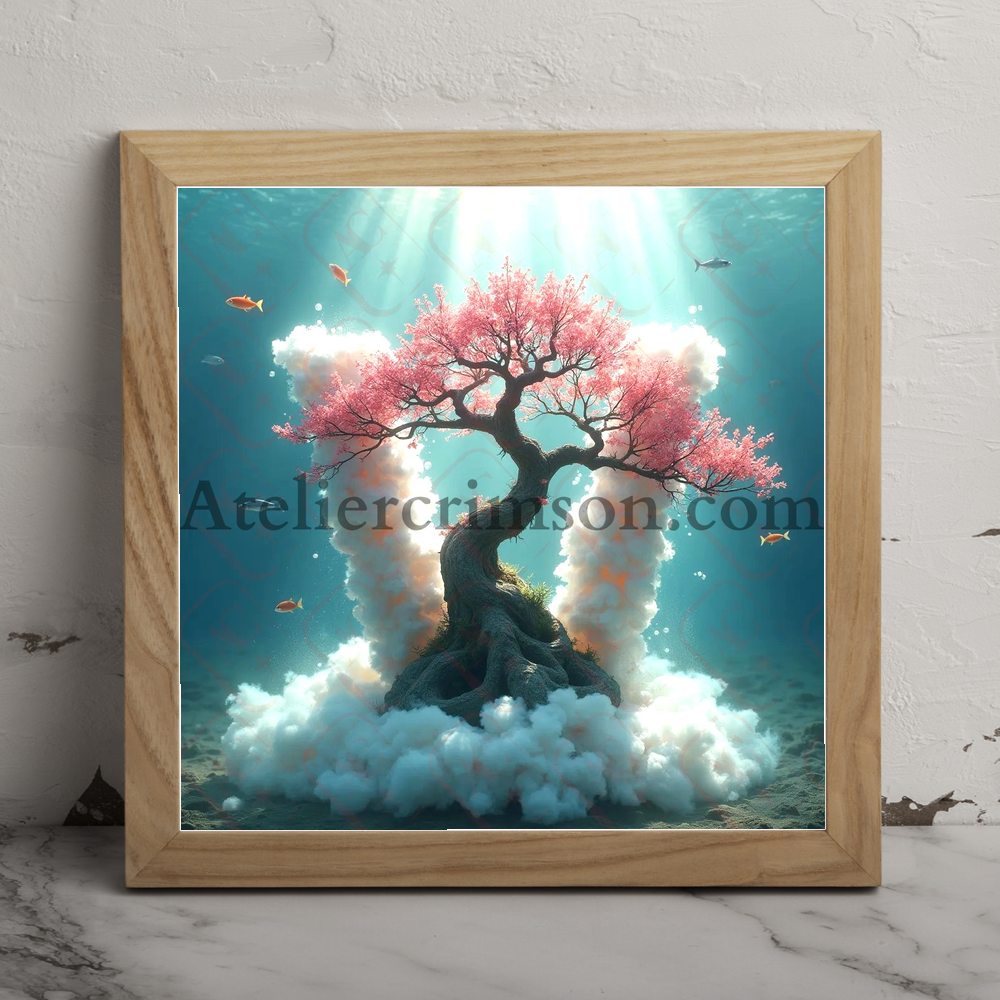The letter W bonzai aquamarin cloud a captivating digital painting with a serene underwater bonsai. Download Now this high quality AI-generated image, perfect for adding a touch of tranquility and creativity to any space.