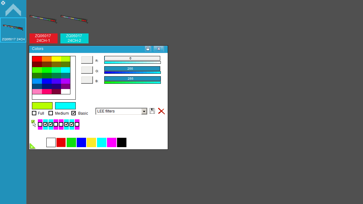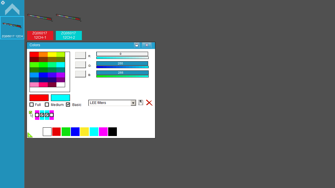 • Accesos directos a Colores Básicos de toda la barra entera: Blanco, Rojo, Verde, Azul, Amarillo, Celeste, Magenta y Apagado.
