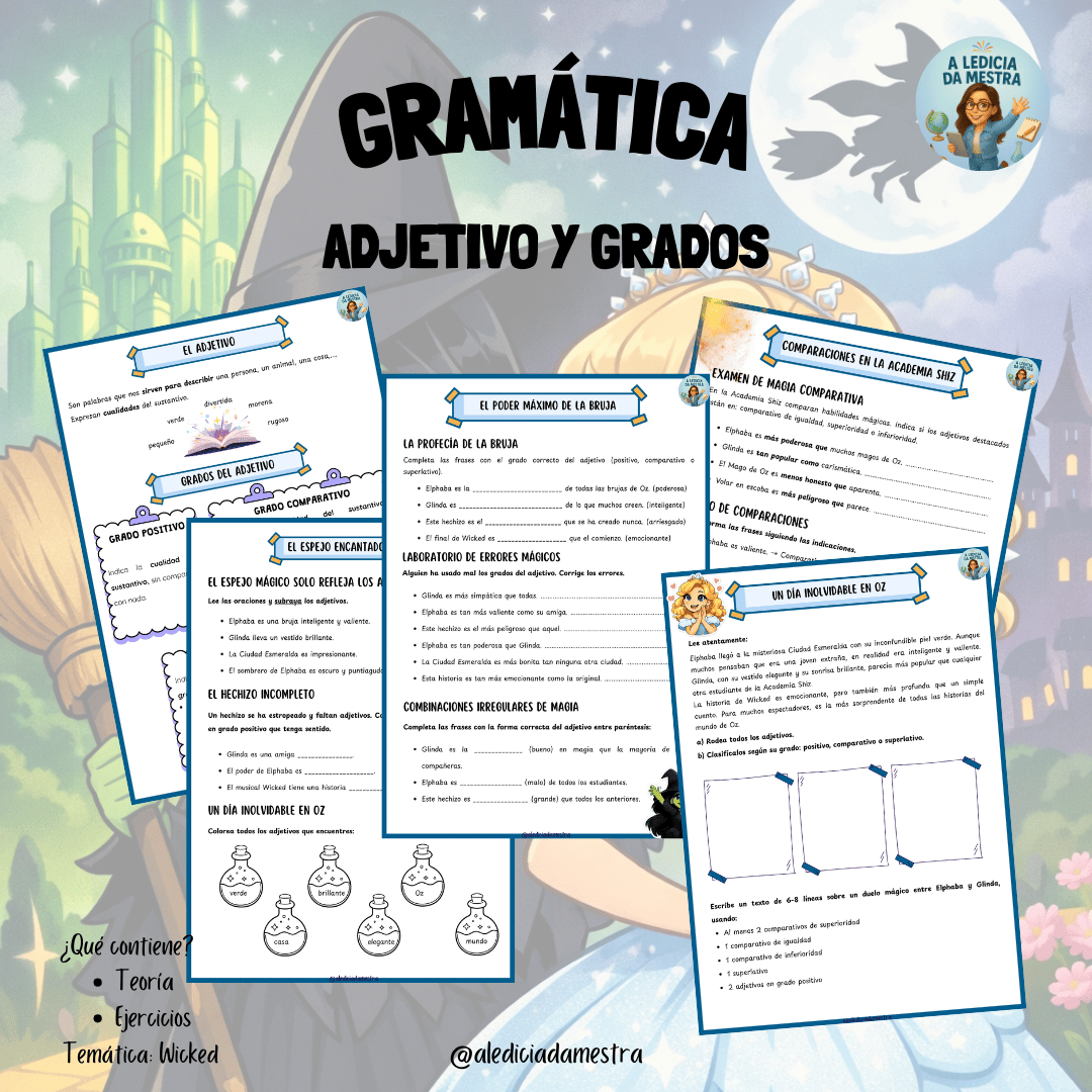 Este cuadernillo de actividades está destinado para trabajar adjetivos y sus grados (positivo, comparativo y superlativo) con temática de la pelĂcula Wicked, a partir de 5Âş de primaria en adelante.