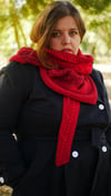 Ixora est un châle écharpe, mi dentelle mi point mousse. Basé sur un jeu de rayures d’une même couleur sur deux fibres différentes (l’une naturellement foncée, l’autre naturellement claire), il se tricote avec deux fils single, alternés sur les sections de dentelle pour les mettre en valeur tour à tour. Il se tricote d’une pointe à l’autre et le dessin en V est obtenu grâce à une diminution “centrale” et des augmentations à chaque extrémité à un rythme régulier.