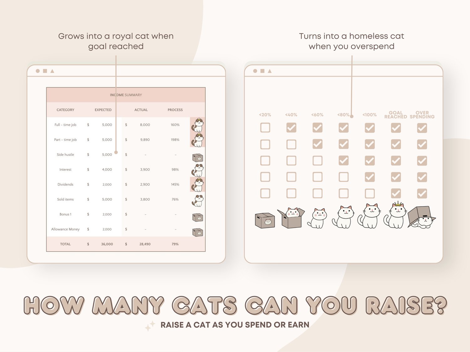 Cats/Dogs grow as you spend, and become sad when you overspend.