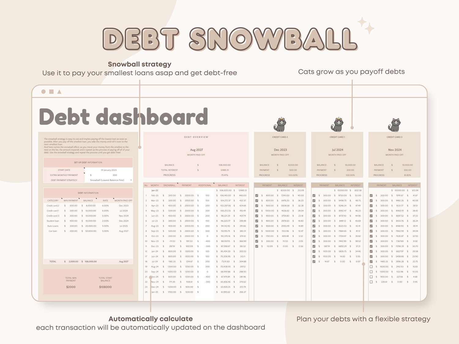 ✤ Debt snowball tracker (Helps you to plan up to 15 debts)