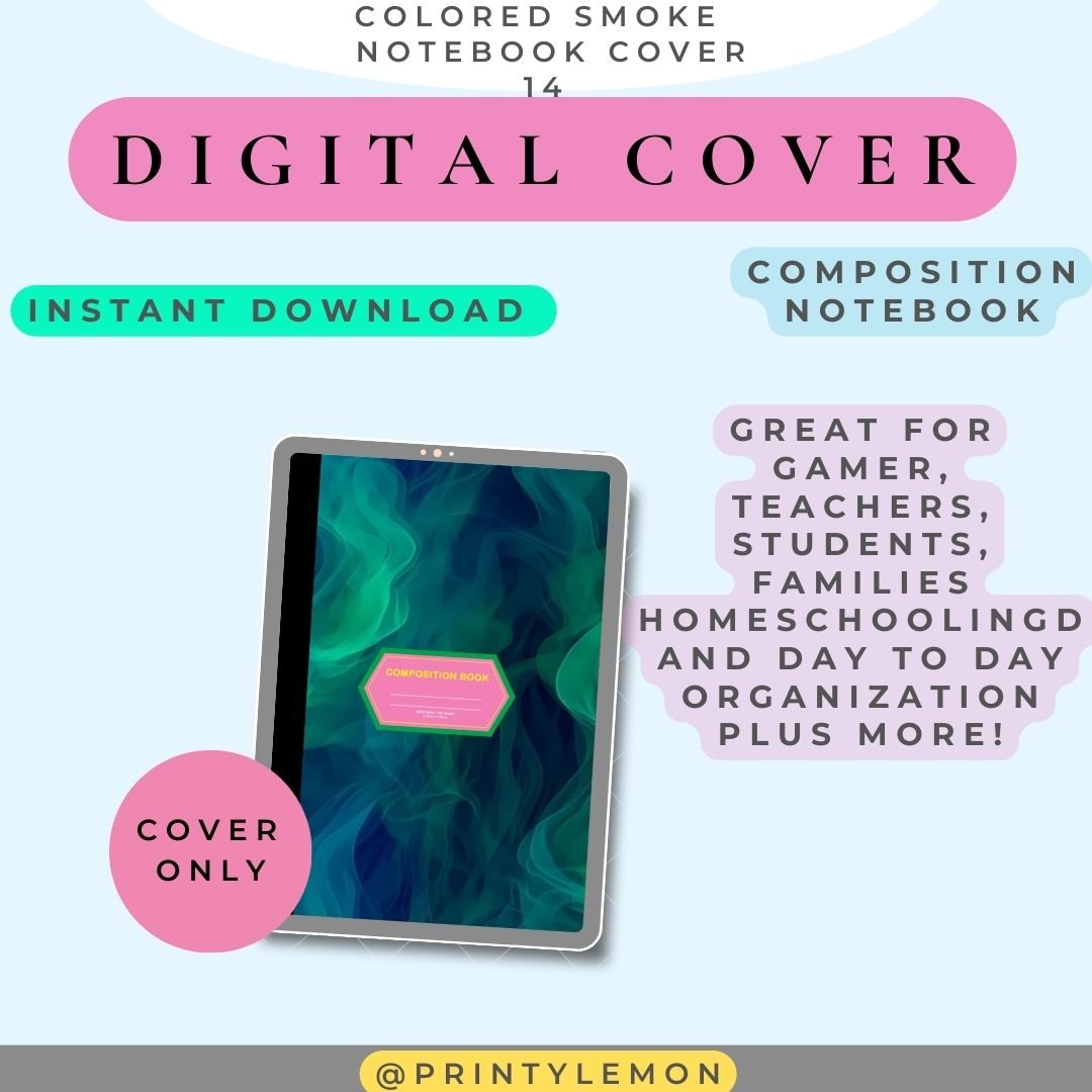 14 Colored Smoke 3D | Digital Cover Premium | Notebook Cover | GoodNotes | Composition Notebook | Printable